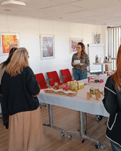 - Repose sur une problématique co-construite selon vos enjeux, mêle une mini-conférence autour de la nutrition et de ses bienfaits et un atelier facile et ludique pour déguster ensemble.